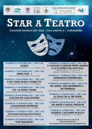 Anche per quest’anno la MACC ha rinnovato la collaborazione con il Circolo ACLI Staranzano e la Pro Loco per la stagione “Star A Teatro” con in programma divertenti spettacoli teatrali dialettali!