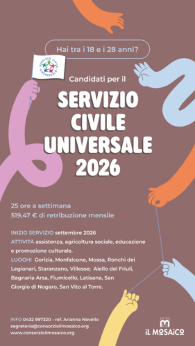 È stato pubblicato il nuovo Bando di Servizio Civile Universale 2026/27 e anche quest’anno la Mutua di Assistenza del Credito Cooperativo ETS (MACC) accoglierà un giovane volontario presso la sede di Staranzano, nell’ambito della rete del Consorzio Il Mosaico.